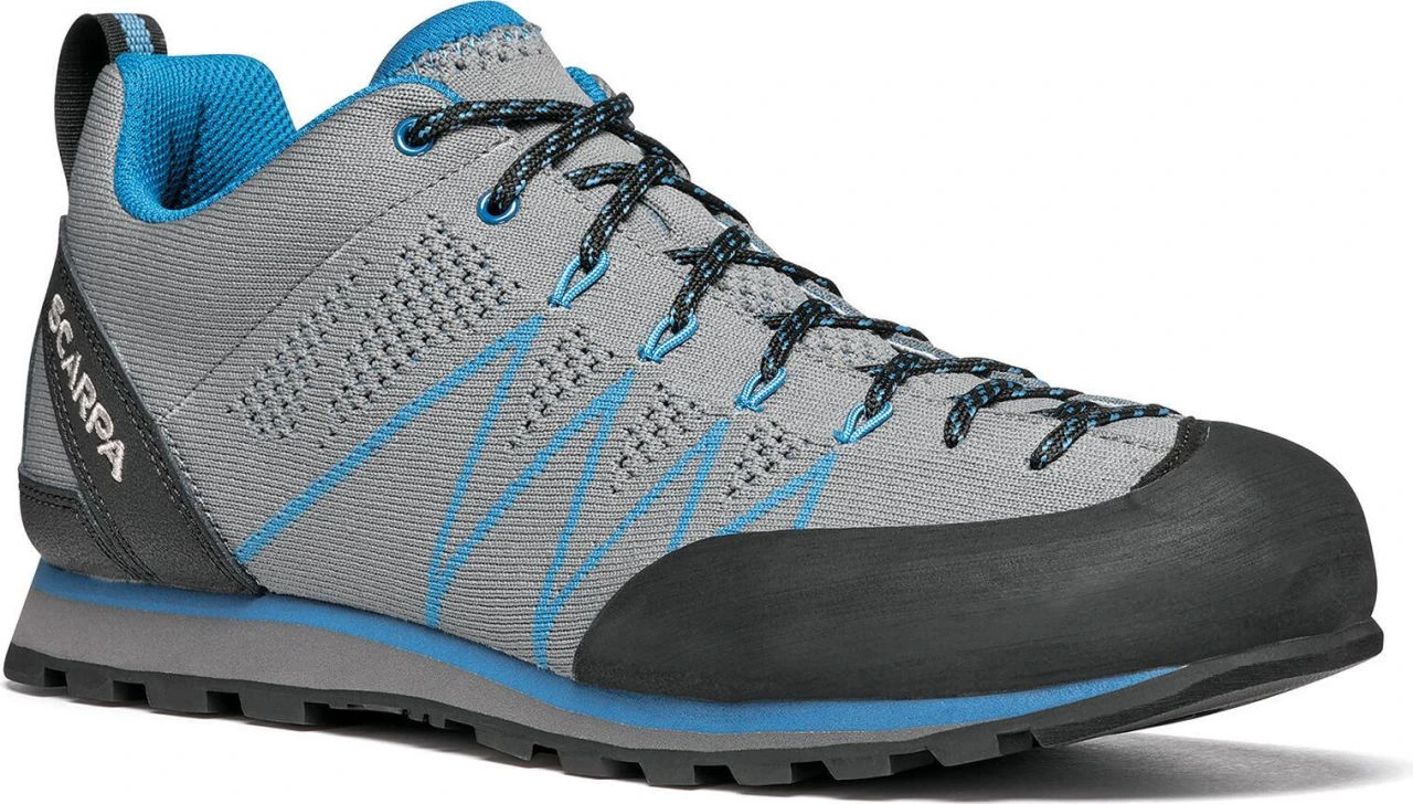 The Crux Air is ideal for climbs on warmer days. The knitted upper material with different densities and structures ensures maximum breathability. The rubber toe cap provides additional protection. In conjunction with the Climbing Zone in the toe area, the sole gives more security even on smaller steps during short climbs. The inner material nestles comfortably and flexibly against your foot. A grippy and non-slip sole complements the alpine features and also provides cushioning.