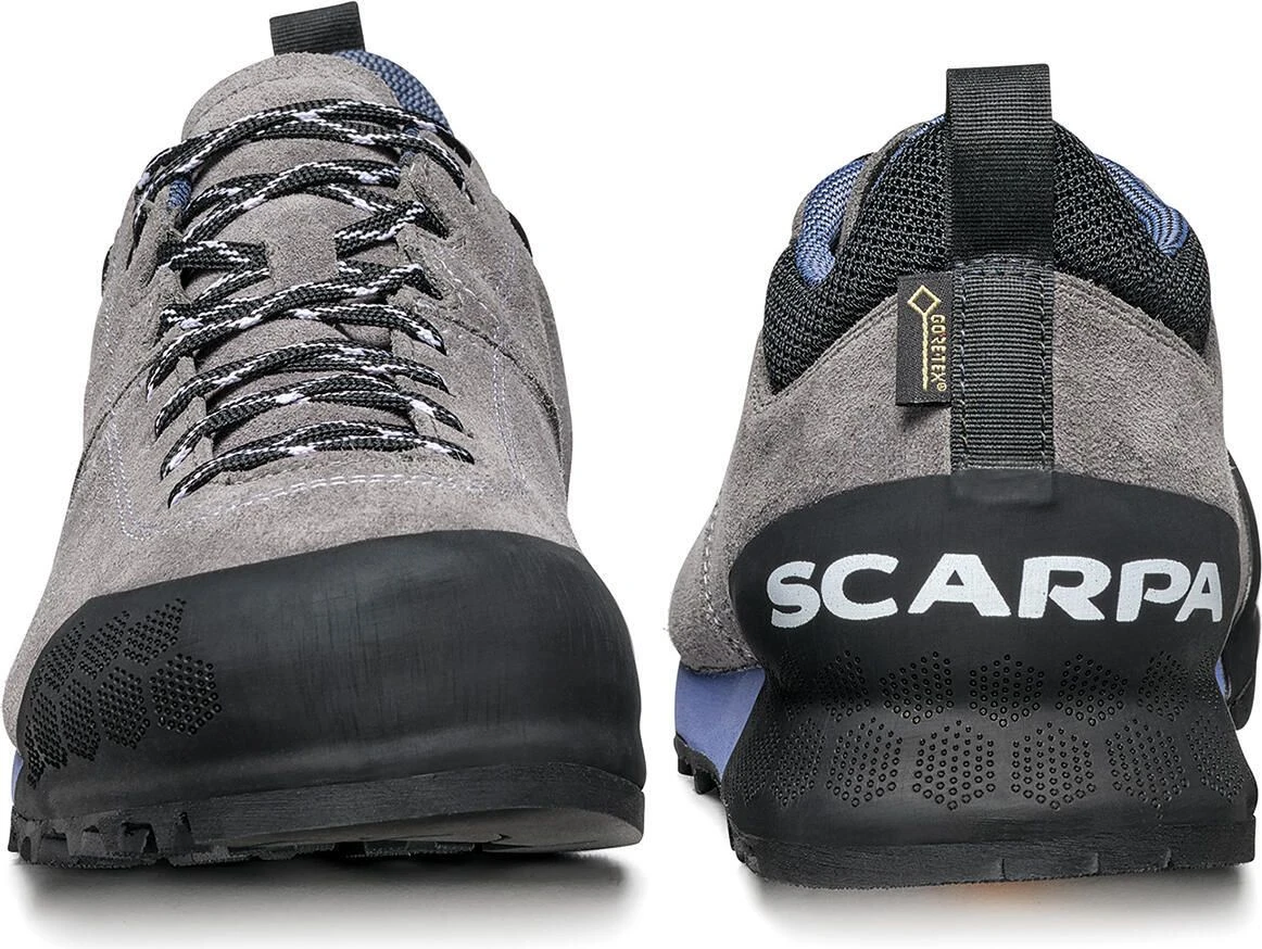 The Kalipè GTX Wmn is a fashionable approach shoe with GORE-TEX membrane for the best possible weather protection. The upper is made of a pleasant to wear suede leather, which provides comfort. In addition, the large scree protection and rubber toe cap provide further protection. The lacing system adopted from the climbing world, which extends to the toes, guarantees the best possible fit. The flexible but non-slip rubber outsole provides a good grip. This approach shoe brings all the features you need to get to the rocks.