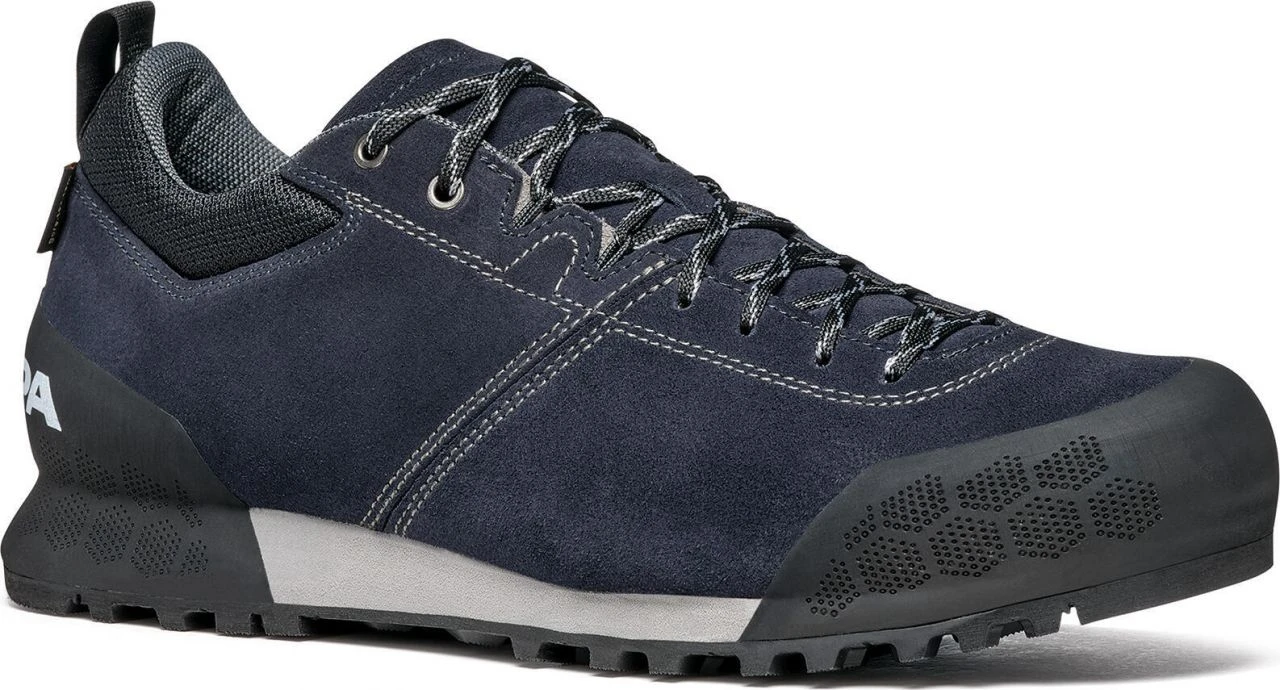 The Kalipè GTX is a fashionable approach shoe with GORE-TEX membrane for the best possible weather protection. The upper is made of a pleasant to wear suede leather, which provides comfort. In addition, the large scree protection and rubber toe cap provide further protection. The lacing system adopted from the climbing world, which extends to the toes, guarantees the best possible fit. The flexible but non-slip rubber outsole provides a good grip. This approach shoe brings all the features you need to get to the rocks.
