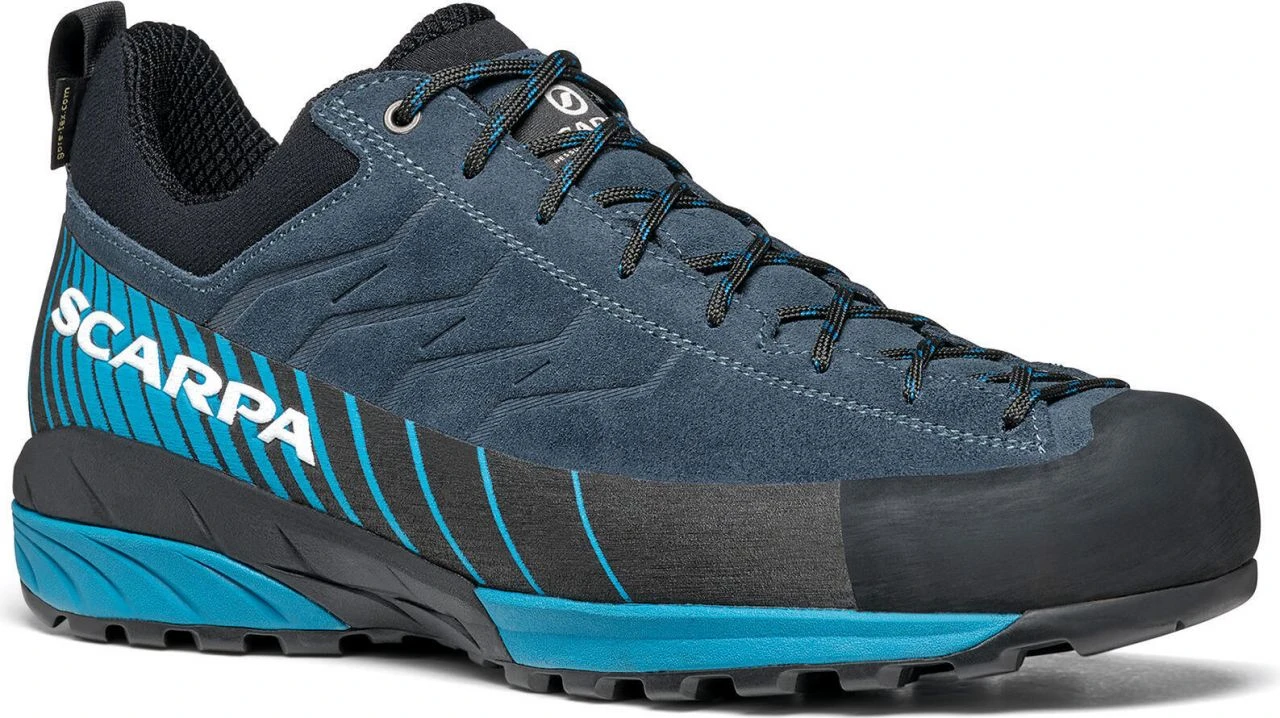 The Mescalito GTX is ideal for technical ascents, light climbing, via ferrata or even hiking. The upper is made of water-repellent suede leather and the elastic fabric cuff ensures maximum comfort. It features a waterproof and breathable GORE-TEXÂŽ membrane to keep your feet dry and warm on rainy days. The lacing system adopted from the climbing world, which extends to the toes, guarantees you the best possible fit.