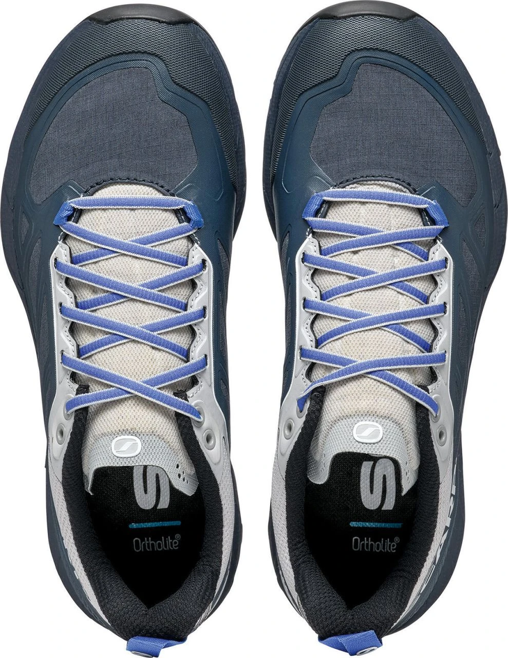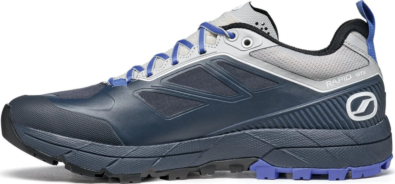 This Hybrid approach shoe offers almost unlimited possibilities when it comes to moving fast in the mountains. It is equally designed for ticking off trail kilometers, jumping from boulder to boulder as for scrambling in the platy terrain. The synthetic upper is extra lightweight for protection and features a GORE-TEX® membrane that provides waterproofing without sacrificing breathability. The dual-density EVA midsole delivers the performance of a trail running shoe, but the TPU arch insert provides stability and torsion control, making the Rapid a hybrid that is suitable for both trail running and climbing. The Dynamic Protection System insert is used in the forefoot and improves the drive and edge stability of the shoe. The Vibram® outsole in Megagrip rubber compound offers unbeatable friction properties and a Climbing Zone in the area of the big toe. Snow underfoot? Muddy trails? Not a problem for the Rapid GTX. It is the perfect choice for moving quickly through mountain terrain in changing conditions.