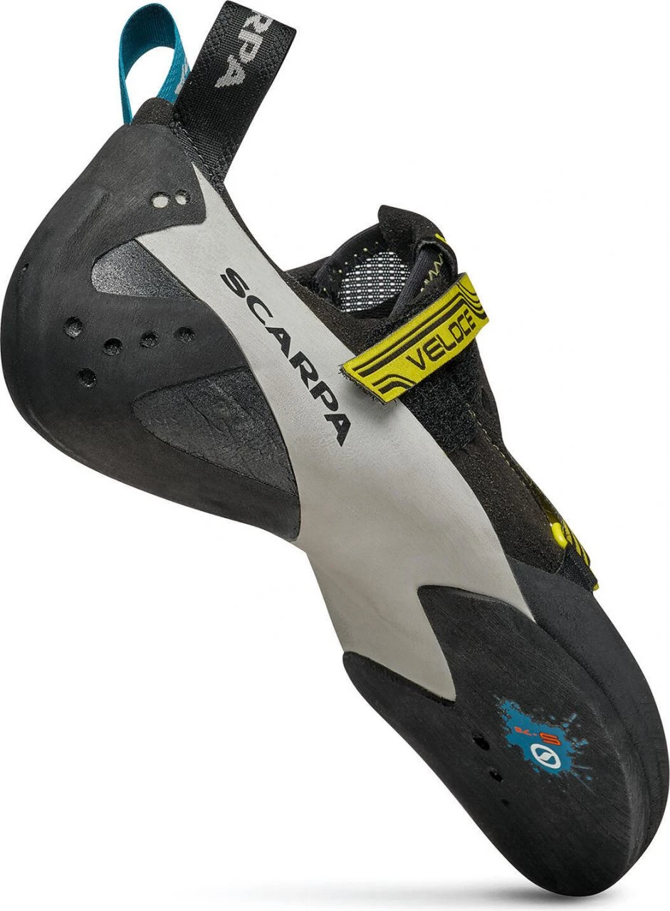 The Veloce is a comfortable climbing shoe that is particularly suitable for long bouldering sessions. The multi-part upper is made entirely of microfiber cut pieces that are sewn together so that the shape fits perfectly to the foot without causing pressure points. The midfoot receives light support from the DTS tension system, while also providing extreme flexibility that allows the shoe to stand up excellently to friction. A minimal Flexan insert provides support when standing small steps and at the same time a high sensitivity and flexibility. A slight downturn and slightly angled toe box provide good power transfer to the toe box and a comfortable feel. The full S-72 sole rubber is incredibly grippy and makes standing on friction kinderleicht.