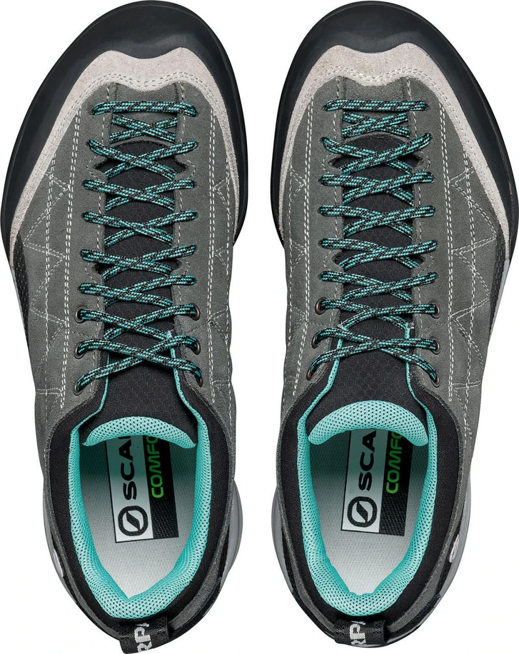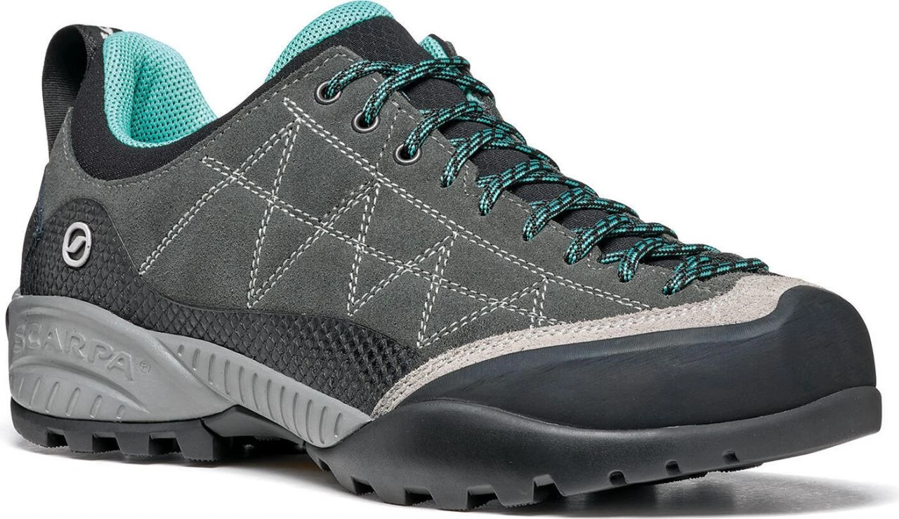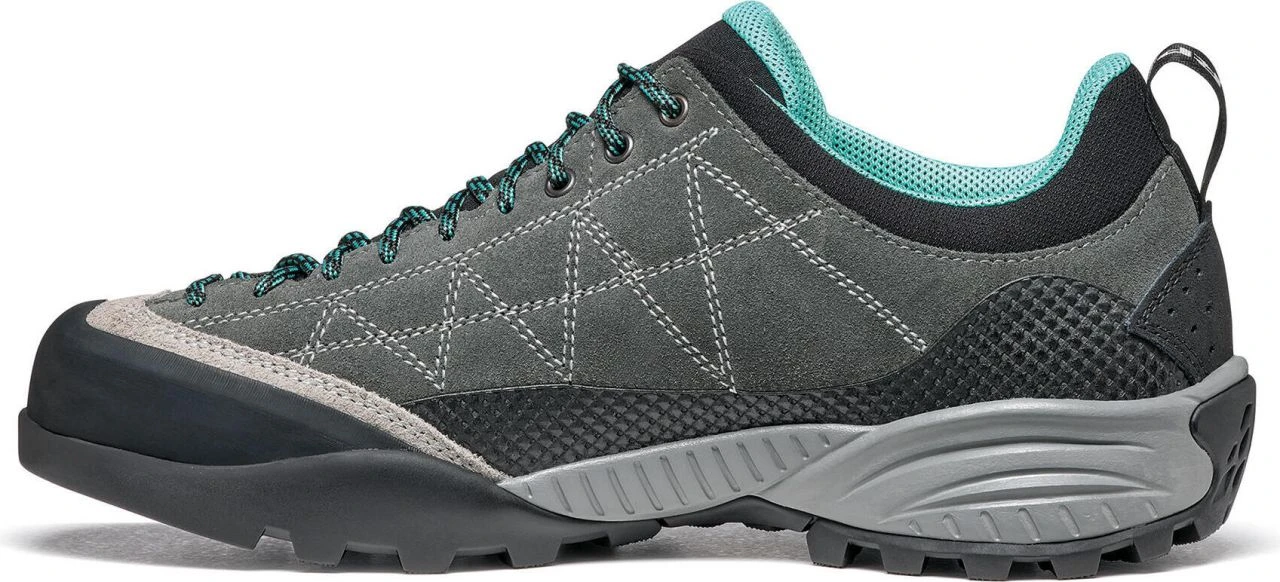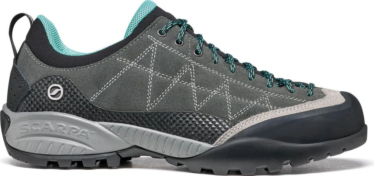 The Zen Pro Wmn is an approach classic. The water-repellent Suede leather upper is additionally stabilized by the sides, inside and outside by an EXO skeleton. A rubber toe cap provides the shoe with the best protection from rough rock contact. The Spyder II sole has a grippy profile and is, thanks to the Climbing Zone in the toe area, optimally suited for tackling light climbing passages. The VibramÂŽ rubber provides optimal grip and a non-slip grip on rough terrain. The lacing system adopted from the climbing world, which extends to the toes, guarantees the best possible fit. Whether for the technical approach or walk in the forest – the Zen Pro Wmn convinces in every terrain.