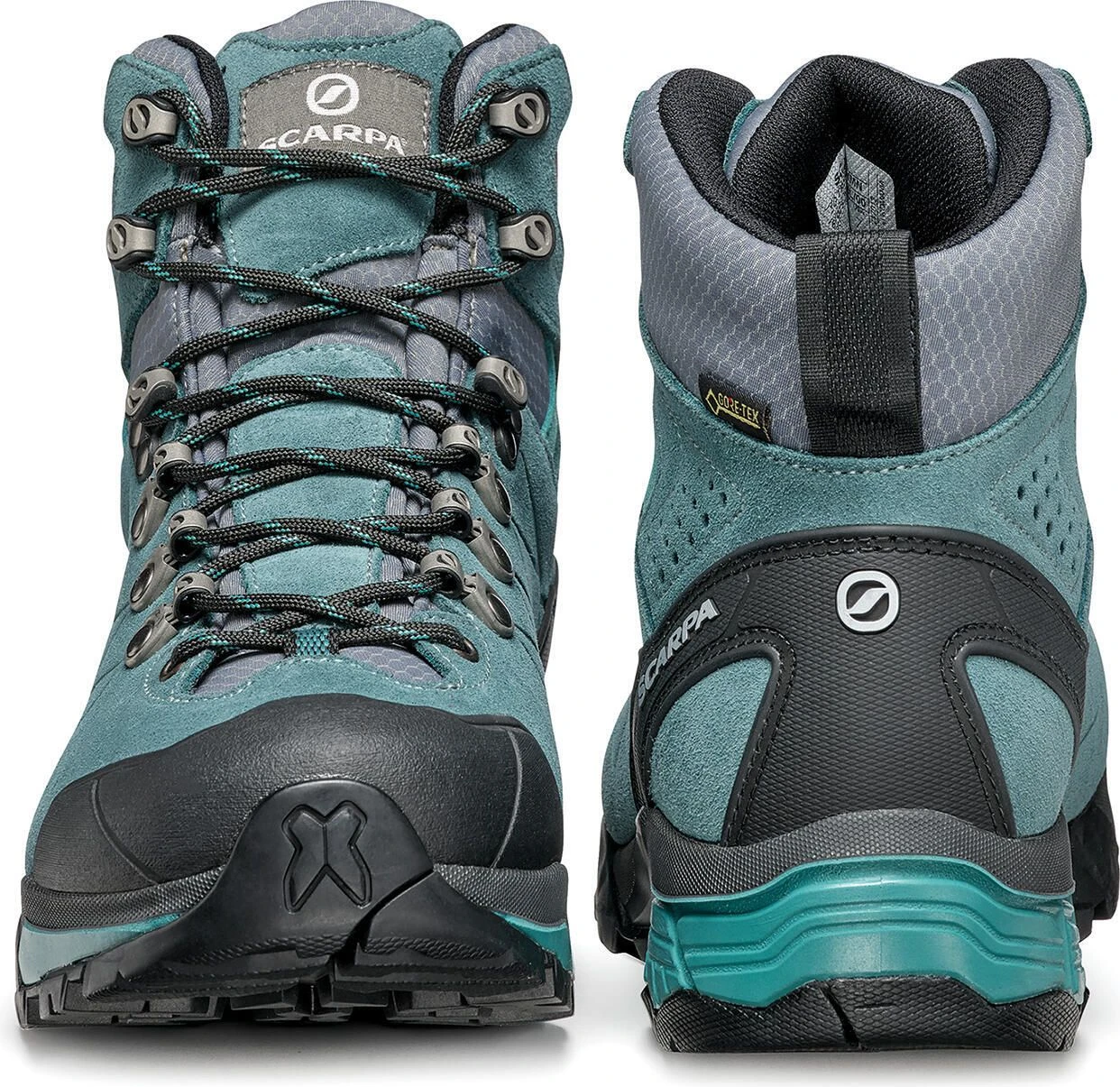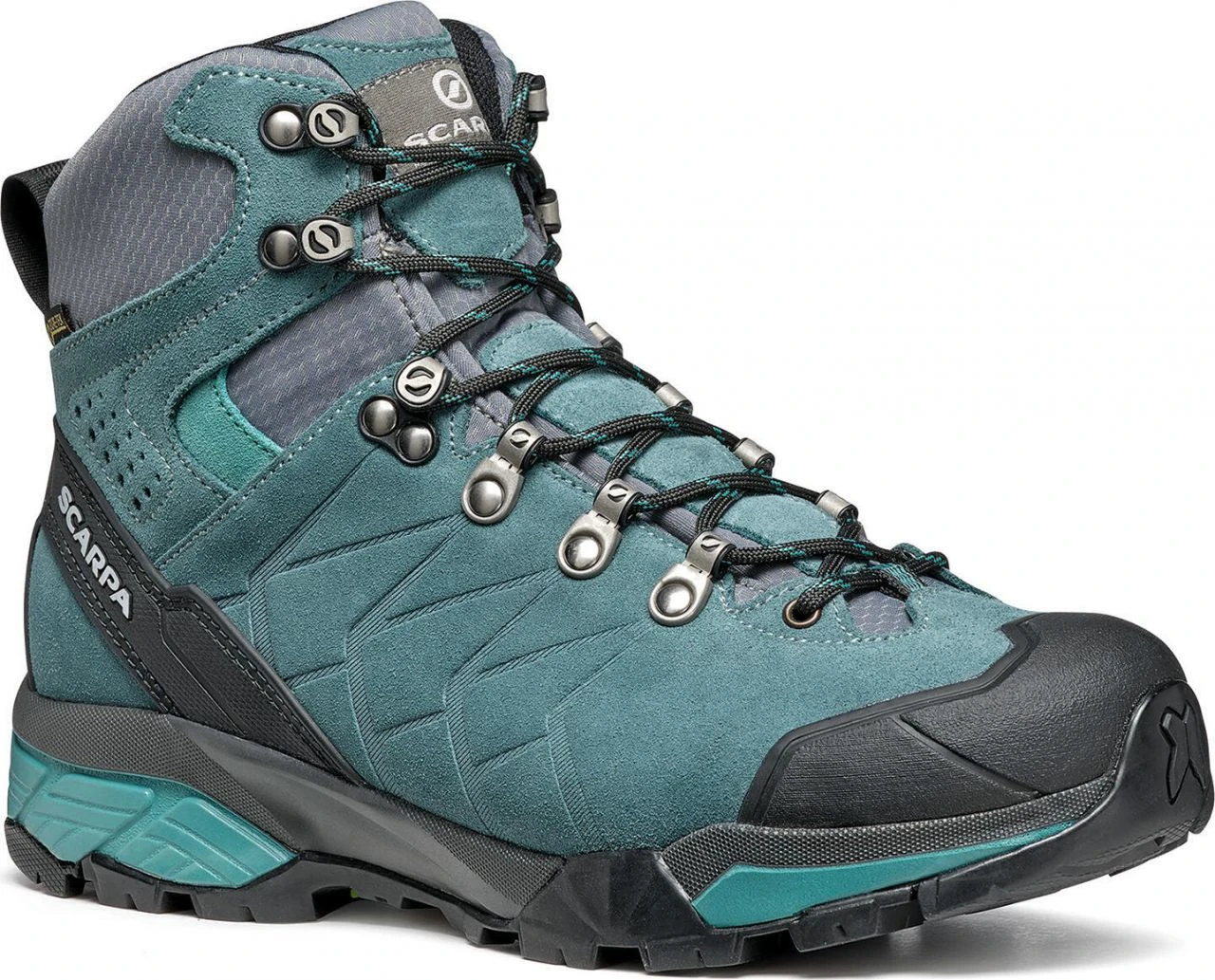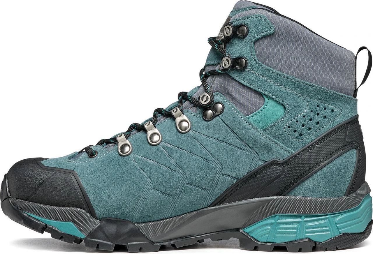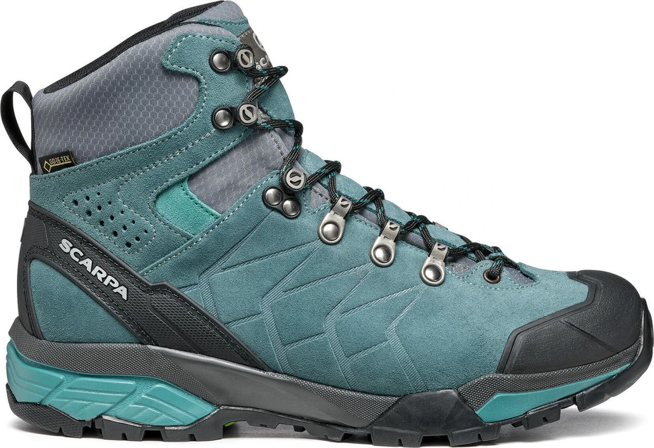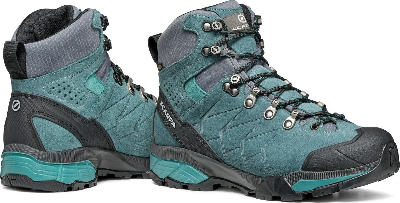 The ZG TREK GTX Woman is the reliable women’s hiking shoe for long excursions in any terrain. It offers, thanks to a quick lacing system excellent comfort. High quality leather reinforced by the 3D-TPU-Protective toe cap, combined with the waterproof and breathable GORE-TEX lining ensures dry and well protected feet. For good mobility in the ankle area, the felx zones are provided with textile inserts. The Heel Tension System allows for better support in the heel area.